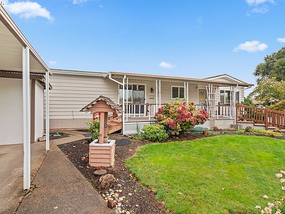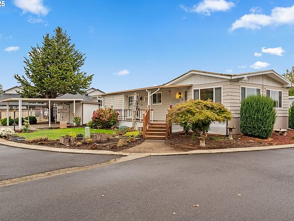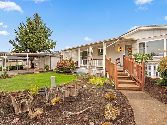 Welcome to Scandia Village — one of Junction City’s most sought-after 55+ communities!This beautifully maintained and thoughtfully updated 2-bedroom, 2-bath Silvercrest home offers over 1,500 sq. ft. of comfortable, single-level living with a bright, open floor plan and low-maintenance lifestyle. You’ll love the spacious primary suite with soaking tub, large kitchen with island and eating-bar, and generous formal living and dining areas. Updates include vinyl windows, newer flooring, fresh paint, kitchen countertops, newer appliances, updated fixtures, and more. A covered deck and beautifully landscaped lot provide a peaceful outdoor retreat! (It also has a nice workshop for gardening or tinkering!)Located on a quiet corner lot inside a meticulously maintained 55+ park, Scandia Village offers gated security, a recreation hall, and a lovely community with monthly social events. Space rent includes water and access to community amenities. Conveniently located just minutes from shopping, dining, and downtown Junction City. Low-maintenance living with beautiful landscaping. Covered parking with space for 2 cars. Don’t miss this rare opportunity to enjoy affordable comfort and community living in one of Lane County’s most desirable 55+ parks!
