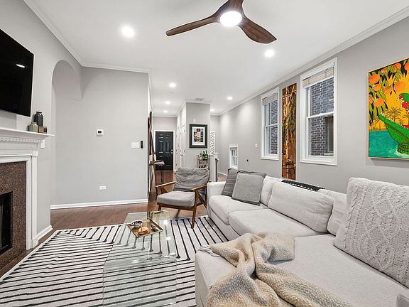 Welcome to this extra-wide Andersonville 3-bedroom, 2.5-bath duplex down, set in an intimate 4-unit building. It sits on a quiet street in beautiful Andersonville. With soaring 10-foot ceilings, graceful archways, and windows on three sides, the home is flooded with natural light across both levels and offers the feel of a single-family residence. The showstopper kitchen has been completely remodeled, featuring brand-new stainless steel appliances, modern cabinetry, stylish backsplash, quartz countertops, and an oversized island perfect for entertaining. A separate formal dining room and living room are connected by a striking two-sided fireplace, while hardwood floors throughout the main level add warmth and elegance. Downstairs, the newly designed primary suite boasts a spa-caliber bathroom with a steam shower, soaking tub, and dual vanity. Both the second full bath and half bath have been fully updated, as has the spacious laundry room, now complete with full-size front-load machines and a utility sink. All three bedrooms are thoughtfully situated on the same level. Two private outdoor spaces extend the living area, and garage parking is included. Perfectly located neat the lakefront, CTA buses and trains, Carmen play lot, and all of Andersonville's beloved shops and restaurants, this home truly blends modern comfort with neighborhood charm.