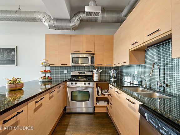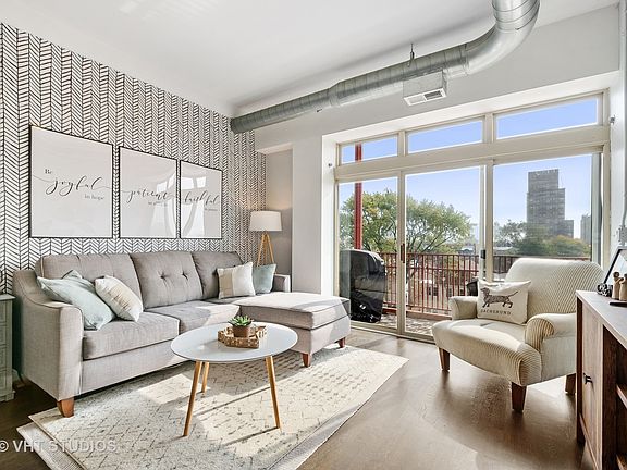Sunny, Bright and Move-in Ready! This 4th floor 2 bed/2 bath condo in North Beach Lofts has magazine worthy decor! Floors refinished & new carpet & paint in the past 3 years. Beautifully appointed kitchen with granite counters and breakfast bar, glass tile backsplash, ss appliances, and insta-hot faucet at sink. Convenient in unit laundry. Spacious primary bedroom with full bath featuring double vanity and large, walk-in, slate shower. Hang out on the south facing 11X5 balcony. Ample closets and cabinets provide tons of storage. Parking is no problem as this unit comes with a heated "double" garage spot that can fit 2 cars. Amazing Location- go 2 blocks east to the lake and 2 blocks west to the red line. Pet friendly and Investor friendly! This gorgeous condo checks every box! The location, condition and price make this the best choice for your next home! Check out the 3-D Tour!