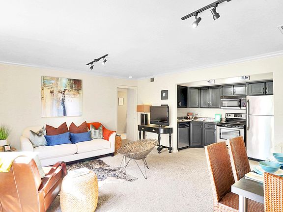 Cozy living spaceSpacious vaulted ceilingOpen kitchenStainless steel appliancesStylish double vanity