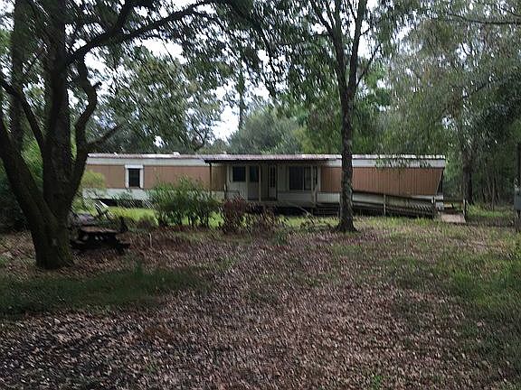 3 acres, NO FLOOD ZONE, Flood X, several GORGEOUS LIVE OAK TREES, convenient location, GOODBEE exit, two miles from I-12, grocery, gas station; pond, clean 2-Bed, 2 Bath Mobile Home 1985 yr with brand new: self-cleaning wall oven, stove -top, dishwasher, water heater, 2-toilets, sink, faucet , NO CARPET, with handicap ramp, covered front porch, two additional rooms built-on; fenced yard. covered storage area; water well with 1 yr old tank, 4-electric poles thru out property, septic tank; End of street next to beautiful gated Wingfield Estates. Beautiful land to build home. Buyers will need to pay RE Agents fees