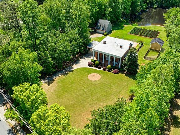 Welcome to your private home sites near downtown Milton with 3.82 acres of serene, unrestricted living with no HOA. This picturesque Southern Colonial estate offers the perfect blend of charm, self-sufficiency, and elegance. Imagine gathering fresh eggs from your own chicken coop, growing an organic garden, steps from your back door, and watching your animals roam freely, all while being just minutes from Milton and Crabapple's shops, schools, and restaurants. The open greenspace, mature trees, natural pond, and fenced saltwater pool create an inviting backdrop for outdoor living. Whether you dream of a thriving vegetable garden, a small hobby farm, or simply a quiet retreat surrounded by nature and wildlife, this property offers the space and freedom to make it happen. Meticulously designed by its original owners, who handpicked the floor plan from Colonial Homes Magazine, this Southern Colonial Greek Revival features timeless craftsmanship and thoughtful details throughout. There are spacious and versatile living areas with multiple wood-burning fireplaces and custom millwork. Gourmet kitchen with real Cherry cabinetry, granite countertops, stainless steel appliances, large island with gas cooktop with downdraft, wine cooler, and oversized walk-in pantry. Elegant entertaining spaces including a large Formal Dining Room with Brick Fireplace, Butler's Pantry with Cherry Cabinetry and copper sink. The Peaceful owner's suite with French doors, soaking tub, separate tile shower, double vanity, and walk-in closet. Finished basement with full bath that connects inside and has direct pool access, perfect for guests or entertaining. A bedroom could easily be closed in but the open floor plan is perfect for entertaining, media space, games and more. The detached 2-car garage features a large workshop that is ideal for wood working or storing items for your homestead. The finished living space above, ready for a guest suite, studio, or home office is stubbed in for a kitchenette, full bath and laundry area. Enjoy evenings on the covered deck overlooking the pond and take in the stunning sunset views while grilling out, the gas line already in place. The large circular driveway offers ample parking for gatherings, equipment, boat or an RV. This is more than just a home - it's a lifestyle. A place where you can live off the land, raise animals, garden, and breathe deeply in your own private sanctuary, free from HOA restrictions. As well as enjoy the high end living just a short 10-minute drive with concerts at Ameris Bank Amphitheater, shopping, dining or ice skating at Avalon, downtown Alpharetta with over 250 shops and 200 restaurants in a 5-mile radius, and so much more! Alpharetta was recently named a top 10 city to live in in the United States! Come experience the best of both worlds: the peace of rural living and the convenience of downtown Milton just up the street, plus downtown Alpharetta and Roswell nearby. Your dream homestead awaits!