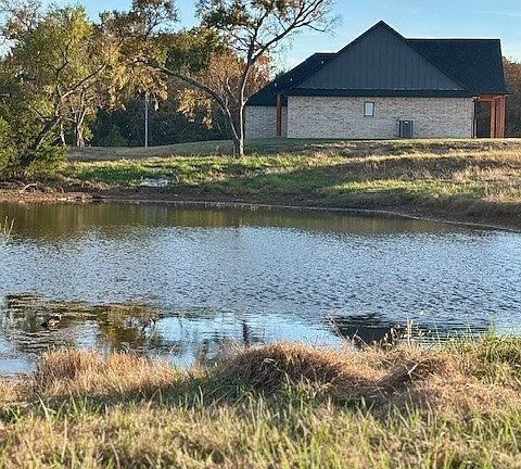 RANCH HOUSE FLOOR PLAN & POND ON 4 ACRES--This home has all the details and eye catching detail inside and out--Massive Front Cedar Post to set the stage of the entry walking up to the entry Builder installed a drain in flower beds so no overflow--once under the Covered Front Porch looking up to all the wood detail then on to the entry door which both sides open--making it easier moving larger items in and out Once inside you see the Open Floor Plan with a Kitchen fit for a Chef and OHHHH don't miss the HIDDEN PANTRY which is full of storage shelves--Dining Area, and then on to the Covered Back Patio & Yes Decked out with those Cedar Post--Back yard offers room to add a pool & outdoor kitchen area if your heart desires with the view of a Pond-- Perfect for your own lil barn yard --Now onto the Main Bedroom, Bath with a soaker tub then oversized closet and a pocket door to the Laundry Room -- additional rooms on opposite end of home with a full bath -- 10,800ft of Sod in place Christmas is just around the corner and this would make fabulous gift all wrapped up in lights