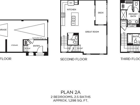 Welcome to this stunning modern tri-level home in the GATED Mirasol community! This brand-new, energy-efficient Plan 2 offers 2 bedrooms, 2.5 bathrooms, and 1,298 square feet of thoughtfully designed living space, complete with an attached 2-car tandem garage.