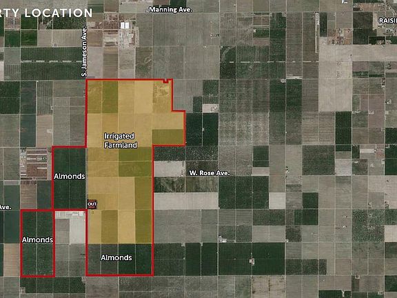 The subject property consists of 2,751.99 acres of almonds and open ground in the greater Caruthers area of Fresno County. Planted to approximately 945 acres of almonds, the balance of the property is irrigated open land offering the opportunity for various row crop or permanent planting developments.There are 24 wells on the ranch with 3 filter stations and 2 booster pumps. Seller does not warrant condition of pumps and wells and Buyer is advised to inspect at Buyer's sole cost during due diligence period. The almond orchards are irrigated by dual line drip irrigation system and the open ground is flood irrigated. The parcels are located in the Raisin City Water District, part of the McMullin Area GSA. There is no surface water delivery in the district.APN's:Fresno County APN(s): 035-150-13S, 43s, 44s; 041-030-43S, 02s, 11 & 18s.
