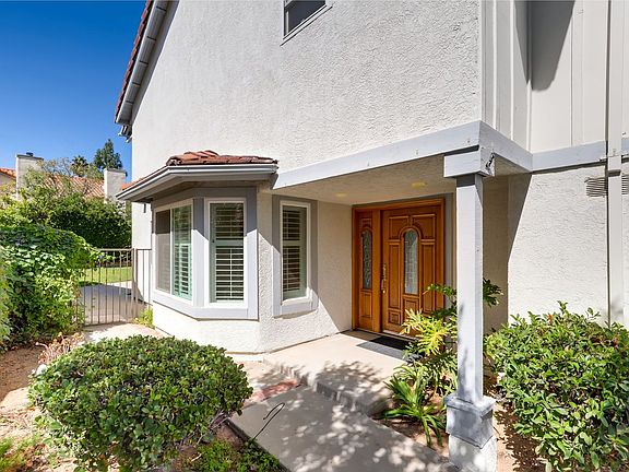 Every REX home comes with a 30-day buyback guarantee. Terms and conditions apply. Schedule your appointment with REX for a same day showing. Beautifully kept home with 3 bedrooms, 2.5 baths, and 1,929 square feet in the prestigious Porter Ranch Estates gated community! Prime location within the neighborhood at the end of a quiet cul-de-sac street with accessible extra parking, this safe & secure community offers 24- hour security, two swimming pools, playground, tennis, basketball, and volleyball courts. The home has been extensively remodeled and offers all new Pella windows, luxury window treatments, upgraded HVAC system, decorative moldings throughout, beautiful iron banisters, Closet Factory closet organizer systems, and upgraded kitchen & bath fixtures. The main floor is warm & welcoming and features a spacious, open floor plan with lots of natural light. The living room showcases a marble-like tile fireplace, tile flooring, and is open to the dining room, which comes complete with large dual pane windows, plantation shutters, and stylish light fixture. The cheerful kitchen features recessed lighting, lots of cabinet space, solid surface countertops, and energy-efficient Kenmore appliances. HUGE and luxurious master bedroom offers plush carpet flooring, magnificent bay windows, sitting area, and two large closets with built-in shelving. Spa-like master en-suite bathroom showcases a dual vanity and a glass-enclosed shower/tub combo with tile surround. Two secondary bedrooms are both well-appointed and include carpet flooring and ceiling fans. Enjoy your very own private backyard with patio/pergola, mature landscaping: lemon tree, palm trees and sprinkler system. Separate laundry room. Two-car garage. Fabulous location surrounded by nature, hiking trails, and just minutes from shopping, restaurants, and excellent schools. HOA: $380/month and covers neighborhood amenities, 24/7 patrol, guard-gated security, street & landscaping maintenance throughout the community and front yard, maintenance of all home exterior & roofing, plus master hazard and earthquake insurance. Don't miss this fabulous opportunity! Schedule a showing with REX today.