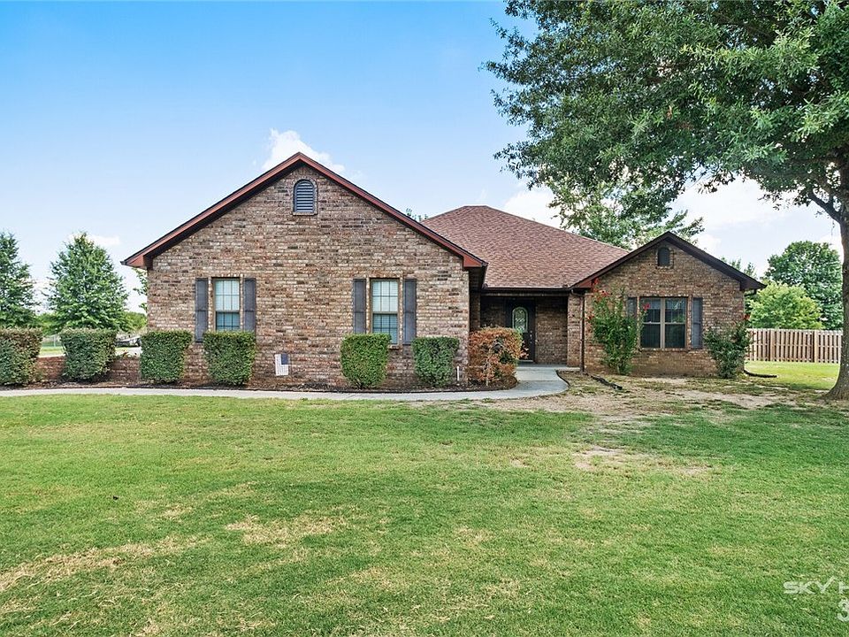 Beautiful full brick home on 1.25 acres with 2 workshops/metal buildings. Mature trees, beautiful privacy fenced back yard. Paved circle drive. Inside is spacious and open with split floor plan and huge living room that includes a wood burning stove. Kitchen has new oven, dishwasher, vent-a-hood, cooktop, plenty of cabinets, plus a walk-in pantry and breakfast bar. You can entertain in the formal dining room that overlooks the back yard. Living room is a generous size and opens to a back patio. Covered patio can be accessed from the living room and master bedroom. Master bedroom & bathroom are spacious with a walk-in shower and soaking tub. Bedrooms 2 & 3 are also a nice size. New hot water tank 2 years ago, New roof and HVAC in 2020. The larger shop, 24'x'30 is heated, cooled & fully insulated with a wood stove. The smaller shop is 16'x'30', ceding insulated. You will also enjoy your own apple tree. You can tell there is pride of ownership when you first drive up.