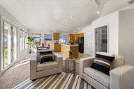 Cozy wood-burning fireplaceLarge garden areaSpacious yardsPass-through rear doorNatural lightFamily room