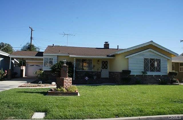 Delightful Downey 2 bedroom, 1.5 bath, living room with marvelous stone fireplace, 1,326 sqft, 5,019 sqft lot. The kitchen has a tiled counter, gas stove and built-in gas oven and a great breakfast nook. There is a half bath off kitchen. A huge stone fireplace is the focal point of a large living room with almost a wall of glass and sliding glass door overlooking the backyard. The living room opens onto the covered patio. Hardwood floors line the first room. The full bath has a built-in vanity, tile counters and a tub with tile walls and separate shower tile walls. The master bedroom has a large double door closet. Desirable Neighborhood on a cul de sac