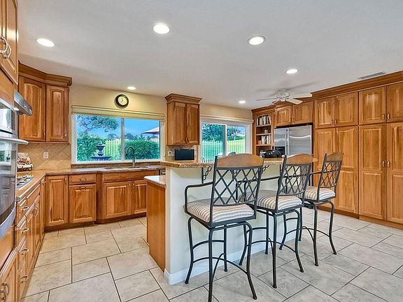 Step into luxury living with this extraordinary ranch-style home, perfectly nestled in the prestigious Don Bernardo Estates, one of the most sought-after neighborhoods in Greens East. With breathtaking 270-degree views, this home overlooks the serene 13th and 17th holes at the Country Club of Rancho Bernardo, offering a truly unparalleled living experience.This meticulously maintained home boasts $390,000 in high-end upgrades, reflecting the pride of ownership at every corner. As you walk through the front door, you are immediately greeted by sweeping golf course views and an open, flowing floorplan. The natural light floods in through a stunning 350-square-foot glass covered atrium, illuminating the home with warmth and elegance.The chef's kitchen features custom cabinetry, gleaming granite countertops, a large island with bar seating, and stainless steel appliances, including a five-burner gas cooktop. Retreat to the expansive master suite, which offers a sanctuary of relaxation with two spacious walk-in closets and a beautifully remodeled en-suite bathroom. The bathroom features travertine flooring, dual vanity sinks, a jetted soaking tub, a walk-in shower with a frameless door, and custom tile surround, creating a spa-like atmosphere in your own home. The pie-shaped 11,800 sq. ft. lot is designed for both beauty and function. The fully fenced backyard, with private gate access to the golf course, is an entertainer's paradise. Enjoy multiple sitting areas, a covered pergola, an above-ground spa, raised planter beds, an elegant fountain, and fruit trees—all set within a lush, professionally landscaped yard. The wrap-around patio, with custom pavers installed in 2022, provides the perfect space for outdoor gatherings or quiet reflection. Additional Features: **New Windows Throughout**New Roof (2019)**New HVAC System (2021)**New Pavers Patio and Driveway (2022) **New Water Heater (2021)**New Garage Door (2022)**Oversized two-car garage with space for a golf cart**Adventure awaits just beyond your doorstep, with Rancho Bernardo Inn, CCRB, and the Rancho Bernardo Winery nearby. And that's not all – membership to the esteemed RB Swim & Tennis Club is covered by HOA fees, offering a plethora of amenities including pools, playgrounds, a gym, Pickleball and more! The property is within the highly rated Poway Unified School District.This home is not just a place to live; it's a lifestyle. With its prime location, impeccable upgrades, and captivating views, this property offers an exceptional opportunity to own a piece of paradise in Rancho Bernardo.