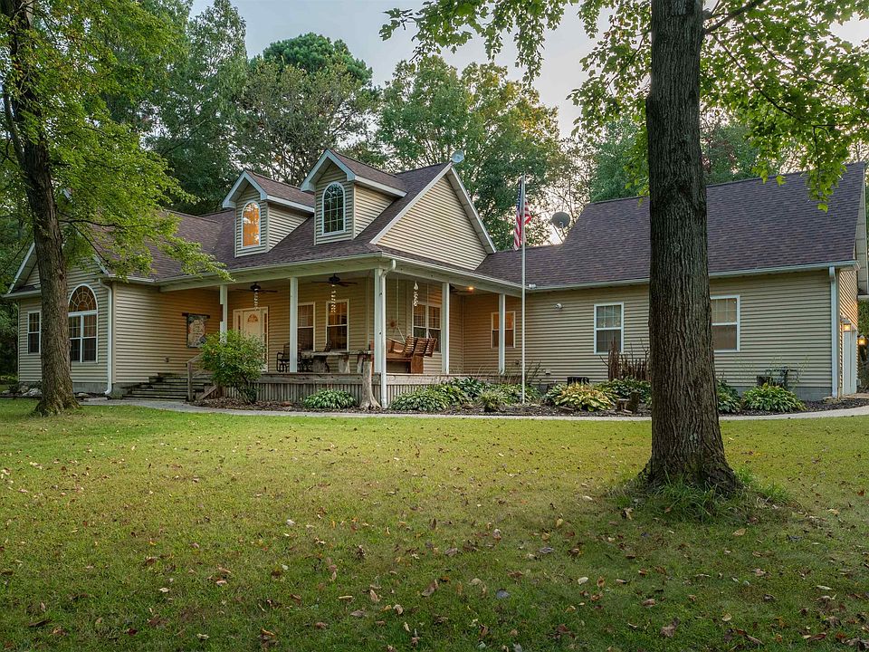 Stop scrolling! This is the home you have been looking for! Check out this amazing 4 bed / 2.5 bath home setting on 2 acres with beautiful mature trees. As you walk through the front door you will notice a spacious living room with a vaulted ceiling straight ahead and a formal dining area to your right. The kitchen area has plenty of cabinet space and the pantry is so big that the current owner utilized it as a pantry and an office. The bedrooms are all very good sized, including a fourth bedroom above the garage. As beautiful as the interior of the home is, the outside is just as breathtaking. The back patio has a hot tub and a lounge area with a stone fireplace overlooking the wooded lot with a view that is second to none. Along with the two car attached garage, there is plenty of additional storage in the two other detached buildings. The larger of the two is insulated with a concrete floor, a heater, and garage door opener. The smaller outbuilding has a concrete floor and garage door opener. The current owner has made several updates to the home including a new HVAC system (2018), roof (2019), gas stove (2019), Hot tub (2021), and septic was pumped in September (2023). Futiva fiber optic internet is also ran to the house, but not hooked up. Don't miss out on this little slice of paradise. Set up a showing today!