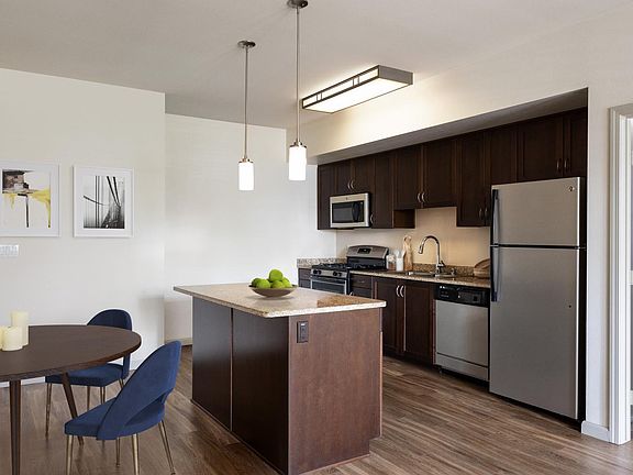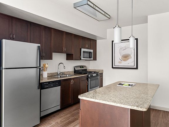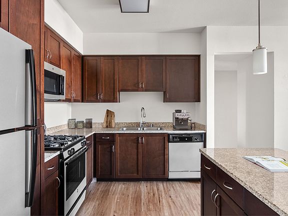 Towering palm treesFully-loaded fitness centerKitchen islandsResort-style poolManicured groundsClear blue socal skiesStainless steel appliances
