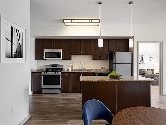Modern sophistication meets major comfort at our luxurious apartments for rent in Santa Fe Springs. Come home to impeccable interiors that reflect a high standard of design and offer total relaxation. Whip up a culinary masterpiece in our chef-worthy kitchens with granite countertops, stainless steel appliances, and kitchen islands perfect for prepping or entertaining. Then unwind in ultimate peace in our hotel-style bathrooms that sport soaking tubs and upgraded fixtures. Just outside the door of our spectacular interiors, you'll find access to everything that makes living remarkable, like a spacious resort-style pool, a fully-loaded fitness center, and a gated pet park all set against manicured grounds with towering palm trees and clear blue SoCal skies overhead.