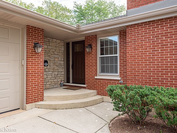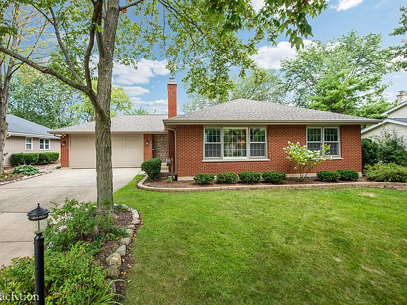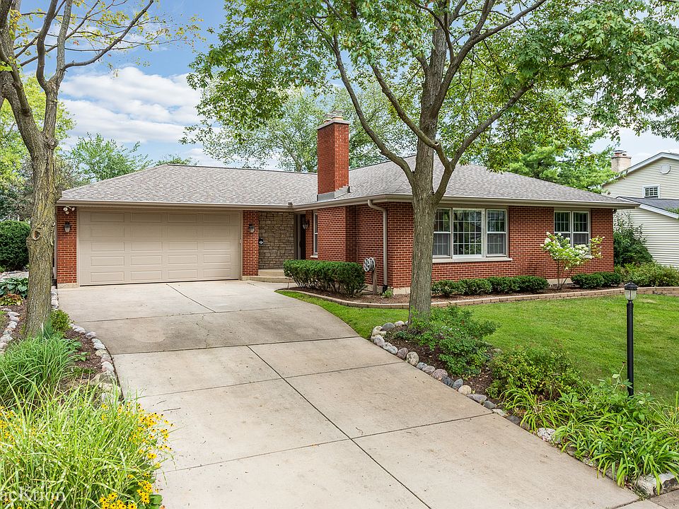 Sturdy Thompson-built, all brick & stone ranch with large mullioned windows, newer roof, gutters, soffits and fascia. New front and rear entry doors. Newly refinished Hardwood flooring in the LR, DR and all bedrooms; crown molding in the LR. Updated light fixtures in the house and on the garage. Electric to the backyard. New upgraded electric panel. Over sized garage door with a rear access garage door to the backyard, apoxy finished garage floor. Garage and home attics have flooring for extra storage space. 2 full masonry fireplaces, one in the LR and the other in the huge unfinished basement. Both bathrooms have been remodeled with custom cabinetry, the Master Bath has heated floors and a custom seamless glass shower door. Private beautifully landscaped backyard with patio.