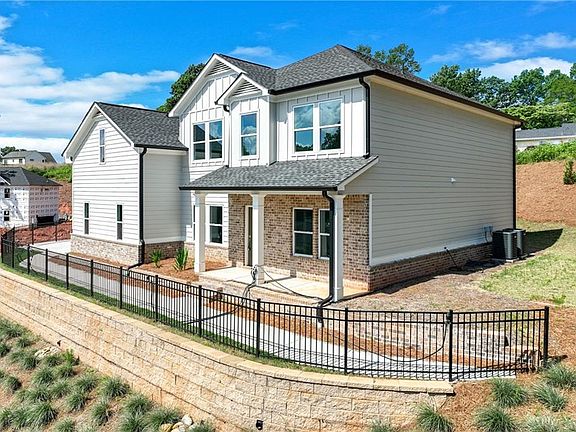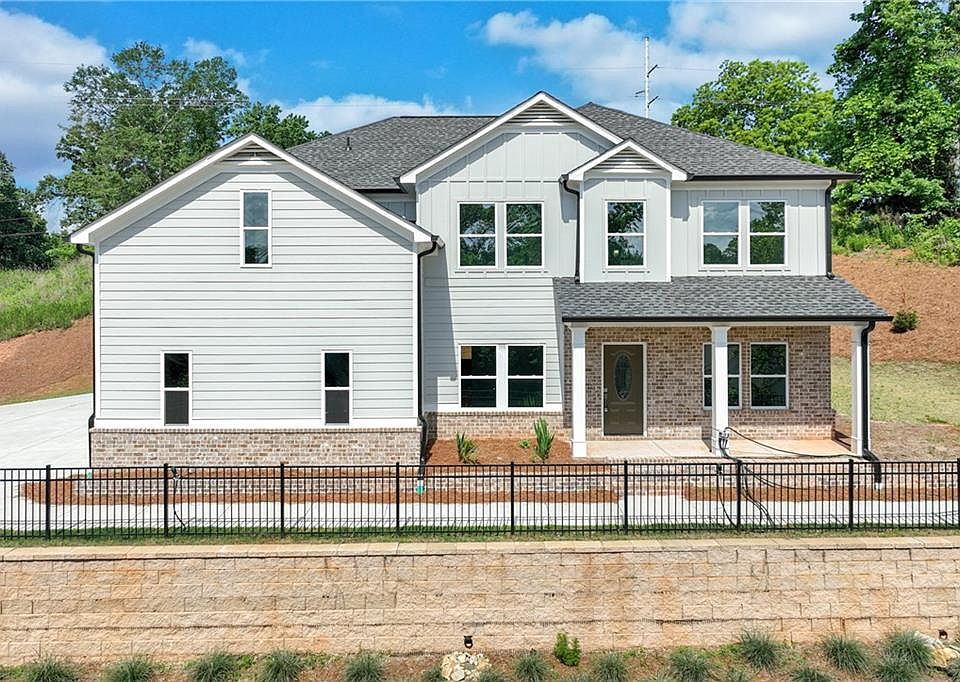 Perched atop a picturesque knoll in one of Gainesville’s premier, newer communities, this brand new home offers modern living and timeless Southern charm with a front porch and a covered back porch. Enjoy views from the front porch and a gracious floor plan with thoughtful living spaces throughout. A separate dining room and front study provide functionality, while the 2-story great room showcases a dramatic fireplace and open-concept island kitchen. Main-level guest suite, plus an additional upstairs suite and a Jack & Jill layout for secondary bedrooms. The oversized primary retreat includes a spa-like bath with soaking tub, tiled shower, and a huge walk-in closet. Relax on the covered back porch adjacent to a flat backyard. Just minutes to the state of the art hospital, vibrant downtown Gainesville square, and favorite local dining spots.  (Virtually staged photos)