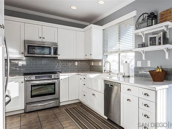 Remodeled Cape Cod style view home in the coveted Cambria neighborhood. Gorgeous kitchen with farmhouse sink, crisp white cabinets, self-close drawers, quartz countertops, glass tile backsplash, stainless steel appliances & gas cooktop. Light and bright, with "sky-high" ceilings, and windows galore! An easy walk to Encinitas Ranch Town Center and Leo Mullen Sports Park. Truly a must see!