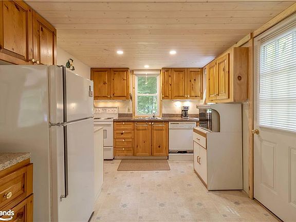 Charming Cottage on Haliburton Lake - Your Lakeside Retreat Awaits! Welcome to this renovated cottage on the serene shores of Haliburton Lake. Sitting on a 0.85-acre parcel, this 720 SF retreat offers the perfect blend of rustic charm & modern convenience. Easy access off a quiet road leads you to this hidden gem, complete with 130' of pristine lake frontage with western exposure for stunning sunsets. As you step onto the wrap-around deck, you'll be greeted by views of Haliburton Lake's clear waters & surrounding forestry. The recently updated cottage invites you into a country kitchen featuring wood cupboards, ample storage space, & a convenient pass-through window to the open-concept living & dining area. Ideal for entertaining, this space boasts an oversized sliding glass door walkout to the deck, seamlessly blending indoor & outdoor living. The expansive deck offers views over the lake & surrounding trees, ensuring privacy & tranquility. The living area is complemented by a dining room with vaulted white pine ceilings, a woodstove, & a large window that floods the space with natural light. Both bedrooms are generously sized, with the primary bedroom offering lake views & the guest bedroom overlooking the front yard. A spacious 3-pc bath completes the cottage's interior. This cottage was renovated 3 years ago from the studs out, including new windows, insulation, drywall, pine ship-lap & more! Across the deck a set of stairs leads you down to the waterfront, where a large lakeside deck awaits. Here, you can bask in the sun & enjoy stunning sunsets. A walkway connects you to the rare lakefront boathouse & docking system. Located on Haliburton Lake, renowned for its excellent boating, water-sports & fishing opportunities, this property epitomizes the cottage lifestyle. Just minutes from Fort Irwin for the essentials & a short drive to Haliburton Village's local amenties. Don't miss this opportunity to start enjoying your summers on the lake.