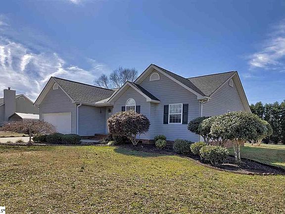 RARE FIND IN WREN SCHOOL DISTRICT! This home is move-in ready and a perfect place to call home! This adorable ranch home has 3 bedrooms and 2 full baths, a large vaulted great room with hardwoods and a cozy fireplace that is open to the vaulted dining/breakfast room, both overlooking the large level backyard which is almost an acre. The master bedroom with walk-in closet and full bath both overlook the backyard also with garden tub and separate shower. The deck was just freshly painted and ready for a backyard BBQ with family and friends. There is an attached 2 car garage for your cars and/or extra storage. No HOA, just great homes on a quiet street close to Wren schools and convenient to I-85, not to mention 20 minutes from downtown Greenville. May qualify for NO PAYMENT USDA financing and/or SC down payment assistance. Don't wait, this one won't last long!