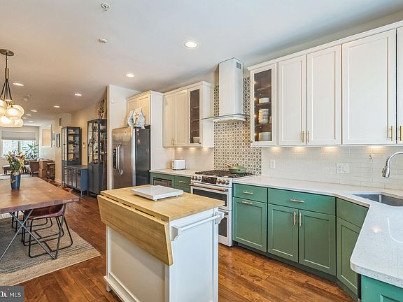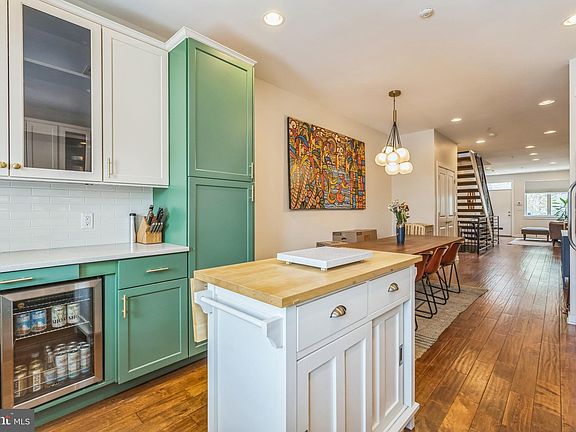 Welcome to this spacious 3 bedroom, 3 bathroom Fishtown home located in the highly desirable Alexander Adaire Elementary School catchment. Enter the open floorplan with hardwood floors, 9' ceilings and an abundance of natural light. Beyond the charming living room is a dining and kitchen area featuring refaced 42" custom-made cabinetry providing ample storage. This gourmet kitchen showcases a double over with 6 gas burners and a dedicated beverage center complete with wine and beer fridges. Step out of the kitchen and right into a large private backyard, perfect for entertaining, barbecuing and a safe outdoor space for your pets. Walking up the floating staircase to the second floor, you will be greeted by two large bedrooms with generous closets. This floor boasts a large bathroom with a jacuzzi soaking tub. Completing this floor is a true laundry room with side-by-side washer/dryer and soaking sink. The primary suite encompasses the entire third floor of the home. Here, you will find a large bedroom, three closets, and a huge bathroom with custom tile work, double shower heads and a double vanity. Your wet bar leads to a charming patio where you can enjoy your morning coffee. The spiral staircase leads to yet another outdoor space with a large roof deck with views of Center City and the Ben Franklin Bridge. If that isn't enough, enjoy the fully finished basement with full bathroom and additional closet space. This home is equipped with a sprinkler system, an alarm system with two video intercoms and the hot water heater and HVAC were just replaced in 2025! The home is steps away from the Fishtown Library, Recreation Center and Pool, and a quick walk from all of the dining, shopping and entertainment that the neighborhood has to offer.