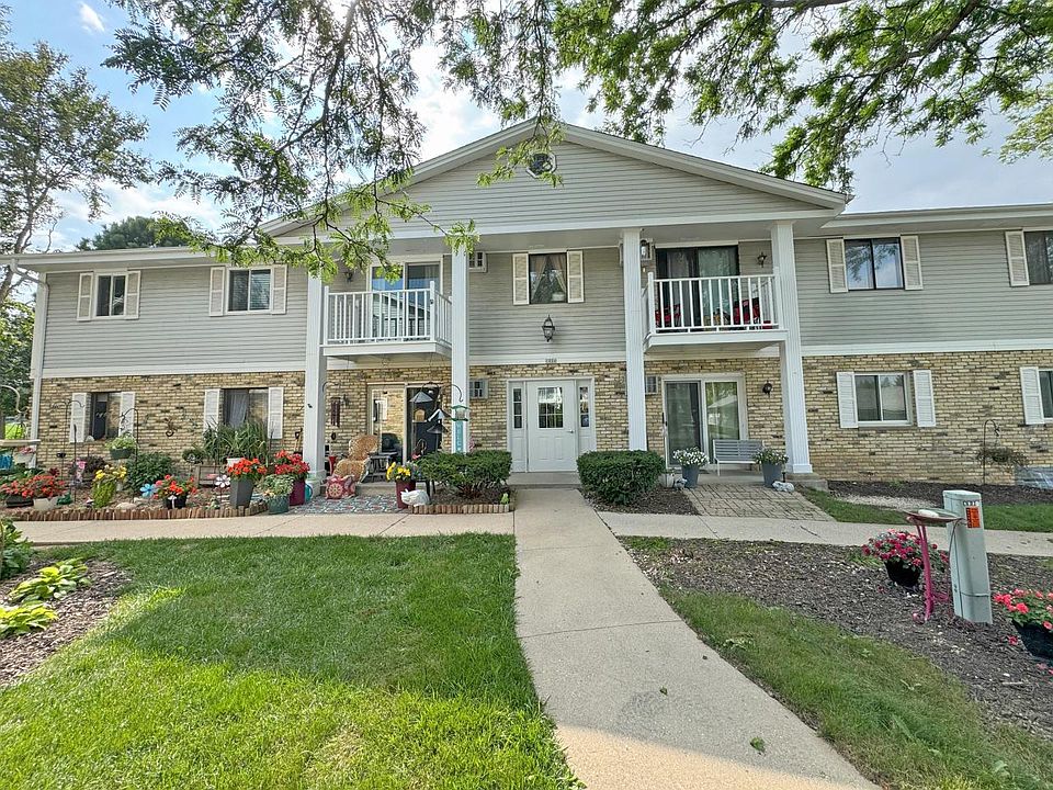 Affordable condo living in this upper-level condo. Freshly painted exterior and interior with new hallway carpet soon. Living room with large patio door leading to a private balcony. The dining area has a natural, wood-burning fireplace. Kitchen has ample cabinets and a breakfast bar with 2 stools. A large walk-through closet in the primary bedroom leads to an attached bathroom. Unit includes a large private room in the basement that can be used for laundry, storage, or as a rec room. New windows and patio door in December of 2022, water heater in May of 2023, dishwasher in August 2023. Chimney cleaned May 2024. One assigned parking space and a detached 1 car garage. Association has a community room for use by condo owners.