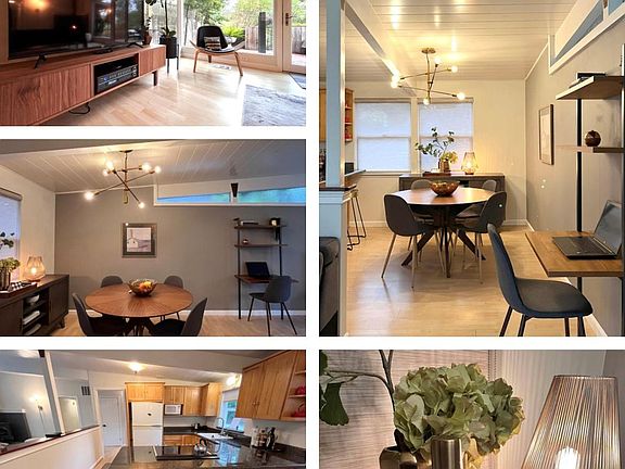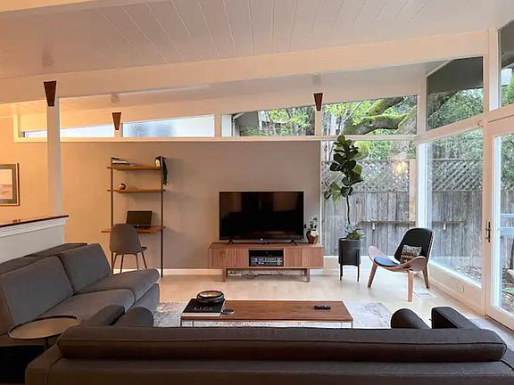 A Spacious Mid Century Modern, Fully-Furnished home situated among the tree tops in the coveted neighborhood of Hidden Valley in NE Santa Rosa. This Single Level Home will stun you as soon as you walk in. You will be greeted by dramatic floor to ceiling windows providing abundant light and tree views. The floor plan is open with crisp white beamed ceilings. Kitchen, Dining and Living Space feature gracious French doors opening to the inviting back yard allowing for abundant indoor and outdoor living! Large Lot with an upper and lower level outdoors. Master Bedroom is oversized and features a toddler room. Slider off Master leads to a small deck that accesses the backyard with numerous fruit trees (Lemons, grapefruit, etc). Natural Gas Jotul Freestanding Gas Fireplace and Updates in the Kitchen including new Electric Range and Dishwasher, complete this home! The home also has new Central Heat and Air Conditioning! Location provides easy access to best schools, downtown Santa Rosa and sought after Sonoma County Recreation! Text if interested. 31o 49o 4oII. Pet deposit/ cleaning fee, and utilities.
