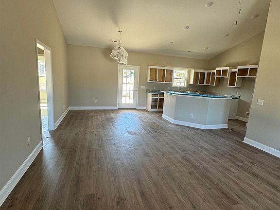 Large 1 ACRE Lot, No HOA. No Deed Restrictions.This is our Cole Plan featuring a welcoming front porch, living room open to kitchen and dining room. Living room has a vaulted ceiling with ceiling fan. Spacious kitchen with real wood cabinets, crown molding, soft close doors and drawers, stainless steel appliances (microwave, range, dishwasher) granite counter tops. Primary bedroom has a tray ceiling with ceiling fan, and a large walk- in closet. Primary bath has raised height vanity with double bowl sinks, granite countertop, TILE SHOWER, linen closet, comfort height toilet, small window that o/c and allows natural light in. Luxury Vinyl Plank flooring throughout with carpet in the bedrooms. Split bedroom plan, guest bath with tub/shower combo, raised height vanity, single bowl sink, granite top, comfort height toilet. Finished and painted 2 car garage. Covered back porch with patio.