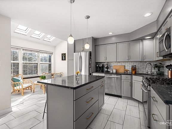 Welcome home to this beautiful END UNIT 3-bedroom, 2.1-bathroom townhome in Geneva! Living room features bay window & gorgeous hardwood floors. The updated kitchen includes quartz countertops, a bright eat-in space with skylights, and separate dining room space, perfect for entertaining. The primary bedroom includes a sitting area, walk-in closet and updated en-suite bathroom. The 2nd bedroom also offers a walk-in closet and full en-suite bathroom. The partially finished English basement includes a wonderful family room space, 3rd bedroom (currently used as an office) and a large laundry room/storage area. Recent updates include: Kitchen remodel (2018), Primary Bathroom (2022); Powder Room (2021); Paint (2023/2018); Water Heater (2022); Roof/Siding (2017). The Chesapeake Commons community includes pool and clubhouse access, and offers convenient access to downtown Geneva, Metra, Prairie Path, parks & shopping. Highly desirable Geneva School District. ***MULTIPLE OFFERS RECEIVED. DEADLINE WEDNESDAY 10:00am.***