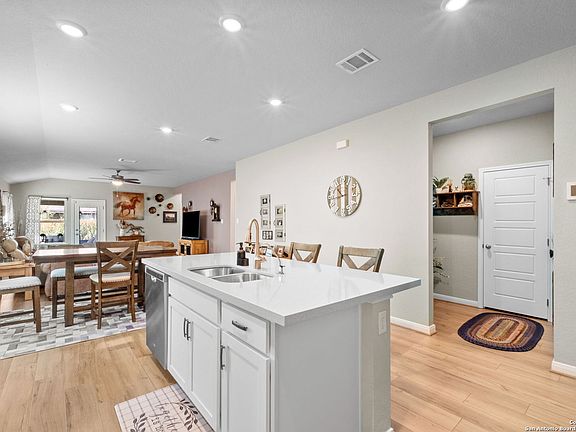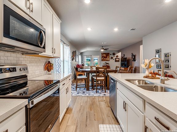 Designed for exceptional living, this meticulously maintained and beautifully decorated 3 bedroom, 2 bath home features a secluded primary suite for maximum privacy, as well as an office and multiple flex spaces that allow endless design possibilities-ideal for working from home, hobbies, or a playroom. Step outside to a backyard oasis, thoughtfully landscaped for gardeners and entertainers alike. With lush plantings and an extended patio, you'll have the perfect space for dining, grilling, or simply relaxing under the Texas sky. This home is loaded with modern conveniences including smart home features, spray foam insulation, a full irrigation system, and an energy-efficient HVAC-ensuring both comfort and savings year-round. Located in the desirable Meyers Landing community, this home feels like a serene Hill Country retreat while being just minutes from the Creekside shopping center, offering phenomenal dining, retail, and entertainment options. Families will also appreciate access to the award-winning Comal ISD schools.