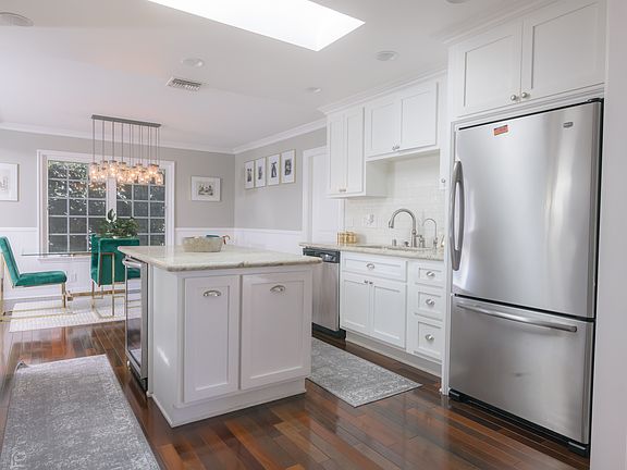 Updated single-level pool home with a private manicured backyard. This three-bedroom two, two-bathroom home is warm, inviting, and filled with designed touches. Natural hardwood floors flow throughout the house. Beautiful double French doors open onto the entertainers' backyard with a pool and built-in BBQ with bar seating. Upgraded kitchen with granite counters, gas range, refrigerator, and wine refrigerator. Ceiling fans in each bedroom. The garage has been updated with epoxy flooring and new storage cabinets and can be used as additional office space. The cozy living room is complete with a wood-burning fireplace. The back gate opens onto a tree-lined park with walking trails and a playground. The owner pays for pool and gardening serivces.