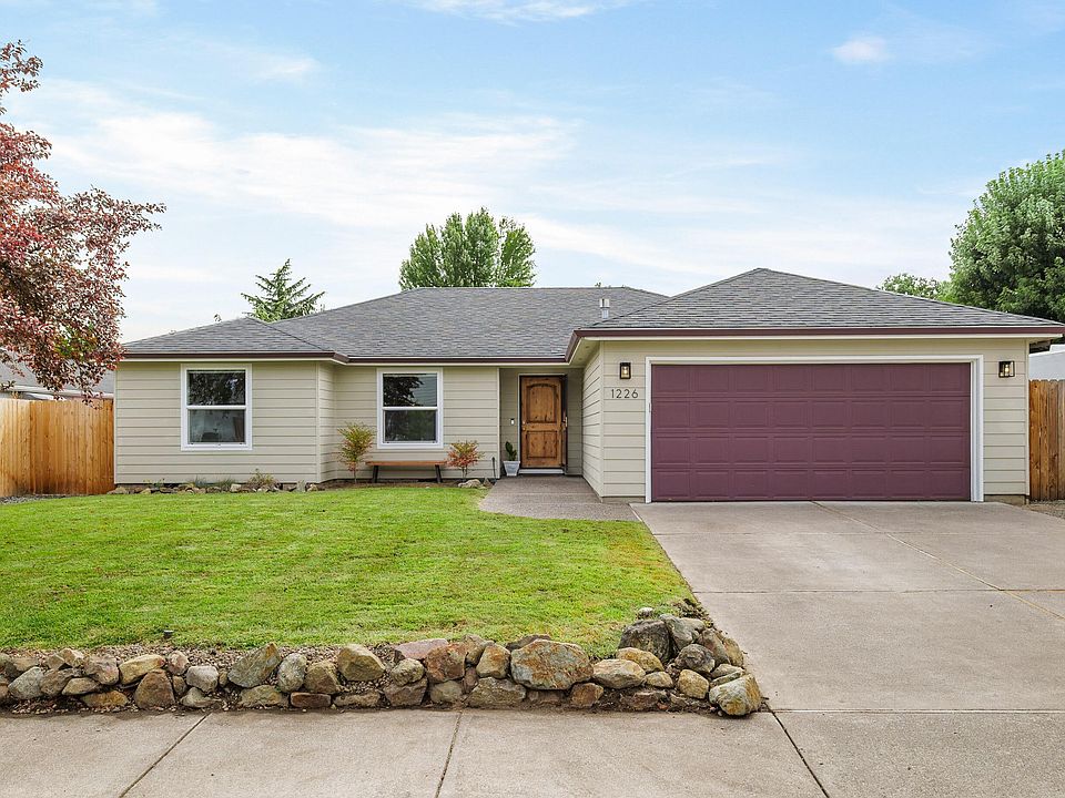 Set on a quiet street in Central Point, this single-level 3-bed, 2-bath home blends comfort & convenience with recent updates that create a fresh, move-in-ready feel. Step inside to a welcoming living room where vaulted ceilings & large windows frame the backyard & flood the space with natural light. The open layout flows seamlessly into the dining area & kitchen, offering abundant counter space, bar seating, & room to gather. A separate utility room keeps laundry tucked away, while the hallway provides additional built-in cabinetry for storage. Bedrooms are well-sized, with the primary suite featuring a walk-in closet & an ensuite bath with a double vanity. Outdoors, enjoy a resurfaced in-ground pool, hot tub, covered patio, & seating area, perfect for summer barbecues, winter soaks, or evenings under the stars. The low-maintenance yard, detached shed, & RV parking add flexibility for hobbies, projects, and storage. Seller is related to listing agent