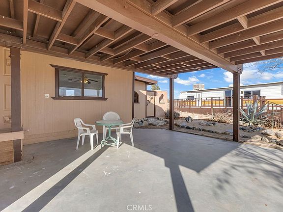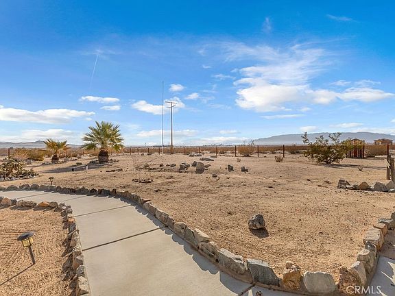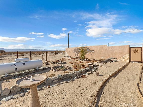 Discover Rockin' D Ranch – A Desert Oasis Like No Other - Nestled in the heart of Desert Heights at 1226 Meldora Ave., 29 Palms, CA 92277, Rockin' D Ranch offers an enchanting retreat on 5 acres of meticulously curated landscape. Just minutes from Joshua Tree National Park, this property is perfect for short-term vacation rentals or as a peaceful full-time residence near the 29 Palms Marine Base and Tortoise Rock Casino. Step inside and be captivated by Turkish marble flooring, sleek ceilings, and elegant crown molding. The modern mini-split HVAC system ensures year-round comfort, while the custom-painted kitchen boasts tile countertops and updated appliances. The bathroom is a sanctuary of style, adorned with porcelain tile walls and a beautifully tiled shower surround. Outside, the artistry continues—stroll through pathways lined with local quarry stones, pass through a custom wood-carved gate, and admire the 6' stucco wall adorned with artistic designs and a striking dragon mural. The fully fenced property features three separate areas, including a retro travel trailer with power, water, and sewer—ideal for extended stays or guest accommodations. Designed for both beauty and functionality, the ranch includes a 1 1/2" fire defense line with a suppression nozzle and a 50' hose, three sheds, a small hay barn, and lush desert vegetation. Don’t miss your chance to own this extraordinary slice of desert paradise. Rockin' D Ranch is more than a home—it's an experience. Schedule your showing today!
