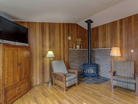 A Shining Star! Super clean move-in ready home on quiet side street on Toledo Hill. Vaulted ceilings and hardwood floors keep the feeling open. The gas stove in the living room will warm the winters to come. Kitchen has a nice eating space with a slider to the multi-level deck and fenced back yard. Two bedrooms (could be three), two full baths, vinyl windows, a one-car garage plus a shop plus a carport! Solid wood interior doors and all appliances included Don't miss this home.