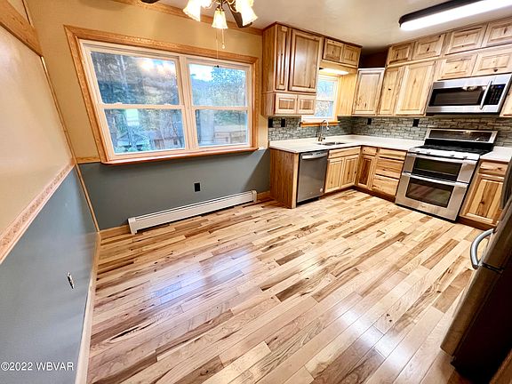 One floor living in Trout Run. 1.2 acres of level land within 2 miles of highway access. Beautifully renovated eat-in kitchen, with new flooring, cabinetry, appliances, and countertops. 1st floor stackable washer/dryer off the 3/4 bathroom. 3, 1st floor bedrooms, one currently being used as an office. The lower level of the property has potential for additional square footage, but it is not completely finished. Could potentially be a family room, and more bedrooms. Double detached garage with 2nd floor storage. Front covered deck and attached carport. New metal roof was installed this year. This property has lots of potential, so come take a look today! Call Deb Williams at 570-916-1643 for your personal showing today.