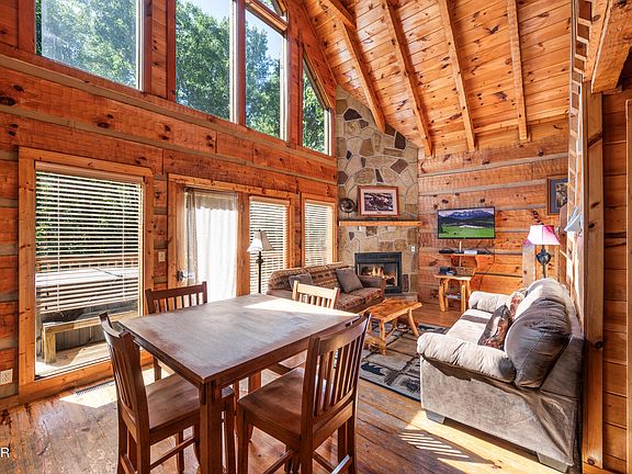 Tucked away in a peaceful setting yet only minutes from downtown Gatlinburg and the Great Smoky Mountains National Park, this cozy 1 BD/2 BA log cabin offers the perfect blend of convenience and mountain charm. Step onto the deck and soak in the crisp mountain air while relaxing in your private hot tub. Seasonal views open up during the cooler months, giving you a front-row seat to the Smokies' natural beauty. Inside, a spacious great room welcomes you with an open living and dining area, a full kitchen, and a stone fireplace that makes the space warm and inviting. The main level also features a private primary suite with its own bath, closet, and utility area for added convenience. Upstairs, a loft den/recreation room and a second full bath provide flexible space for relaxing or entertaining. Thoughtful storage areas throughout make this cabin practical as well as comfortable. Whether you're looking for a personal mountain retreat or an investment property, this cabin is already on a successful rental program and full of potential. Walking distance to Ober Mountain and the owner's club featuring pools, tennis courts and recreation facilities. It's about 3 miles from the National Park and downtown Gatlinburg and an authentic log cabin in the traditional Appalachian style with dovetail joints, exposed beams and an A-frame roof. Serviced year-around by the city of Gatlinburg, including road maintenance, trash pit up and fiber optic high-speed internet. It's a wonderful opportunity to enjoy Smoky Mountain living at its finest.