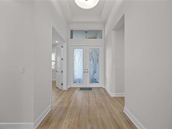 Available for a minimum of 7 months lease! Discover luxury living in this stunning, light-filled home, available for rent immediately with a minimum lease term of seven months. This BRAND NEW, never-lived single-family home featuring 3 bedrooms plus a den and 2.5 baths offers an open and spacious floor plan with modern touches perfect for spending time with family and friends. Enjoy the peaceful backyard with a gorgeous saltwater pool and spa, an oasis of tranquility and elegance surrounded by greenery, and a spectacular lake view on a screened lanai. Popular for its versatile garage space, this "Nautilus" model features a 2-car garage plus dedicated golf cart parking. Every detail has been meticulously crafted to elevate your living experience. The gourmet kitchen is a chef's dream, featuring a spacious island, a high-end natural gas cooktop, and white quartz countertops, all illuminated by refined recessed lighting. The home's sophistication is further accentuated by tray ceilings, plantation shutters, impact glass windows, luxury plank flooring, and custom closet organizers in the primary bedroom. This property is unfurnished, providing a blank canvas for your personal touch. Located within the prestigious Valencia Trails community in Naples, immerse yourself in the vast offerings of the 43,000-square-foot clubhouse. The vibrant 55+ community offers the amenities perfect for active lifestyles: enjoy tennis, pickleball, bocce ball, and walking trails, or invigorate your routine at the state-of-the-art fitness center, resistance pool, or lap pool. Indulge in a pampering session at the massage and nail salon, unwind in the steam rooms and spa, or relax by the resort-style pool. Delight in gourmet meals at the on-site restaurant or poolside bar. There is no shortage of activities and clubs, including two dog parks for your furry friends. Incredible opportunity to enjoy paradise living in luxury in one of Naples's most desirable communities!