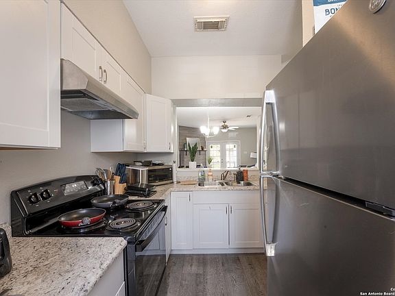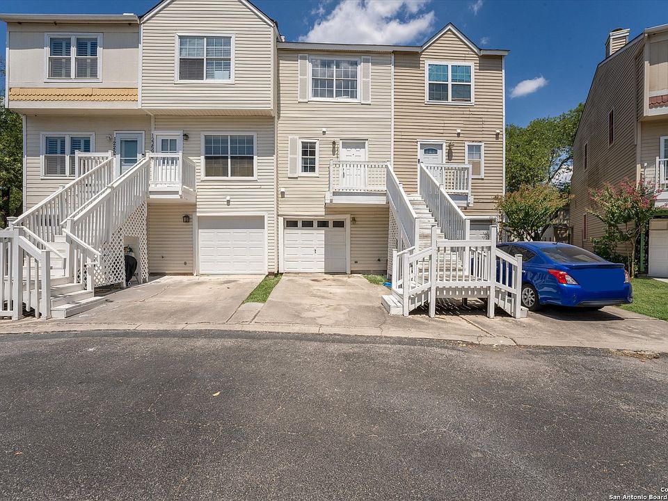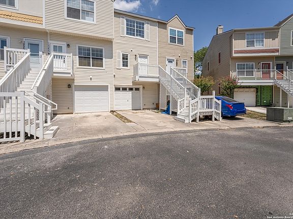 Welcome to 12261 Lemon Blossom - a light and airy 3-story townhome in San Antonio designed with modern living in mind! From the entry-level, step into an open and stylish space featuring contemporary grey and white finishes. The kitchen shines with crisp white cabinets, upgraded countertops, and a breakfast bar with additional seating - perfect for entertaining or enjoying your morning coffee on the private balcony overlooking lush greenery. This versatile floor plan offers two spacious bedrooms, each with its own private ensuite bathroom featuring upgraded showers. A flexible study/workout/flex room can easily be transformed into a third bedroom, with its own full bathroom and complete with access to a private patio. Enjoy community amenities, including a sparkling swimming pool just steps away - ideal for those hot San Antonio summer days. Located in the sought-after Northeast ISD, this home is zoned to Coker Elementary, Bradley Middle School, and MacArthur High School. Conveniently situated near McAllister Park, San Antonio International Airport, Ft. Sam Houston, and just minutes from downtown San Antonio, this home also offers easy access to Wurzbach Parkway, Hwy 281, shopping, and dining. Do not miss your chance to own this move-in-ready, low-maintenance San Antonio townhome for sale in a prime location!