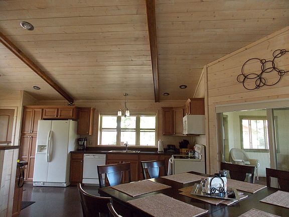 Quiet, secluded year round vacation home, built in 2008 and very nicely done. Walk up and into the kitchen from the covered deck; it's spacious and open to the dining area and living room. Whitewashed ship-lap covers the walls and gives a very warm feel to this home. Floating composite floors and maple cabinets. There's an attached 3 season gazebo that gives access to the wrap around deck. Full finished basement with 2 bedrooms, good closets space, full bathroom, utility room and doors that lead out to the covered patio. There's great outdoor entertaining here for family and guests. The exterior is Smartsiding, a super durable Green product made in the USA. 100' on the sandy shore of Big Lake-It's an all sports lake and is home to Largemouth Bass, Sunfish, Walleye and Yellow Perch. Big Lake is 127 Acres in size and about 34' deep. This is a quiet recreational location with snowmobile and ATV trials nearby by, State of Michigan land!