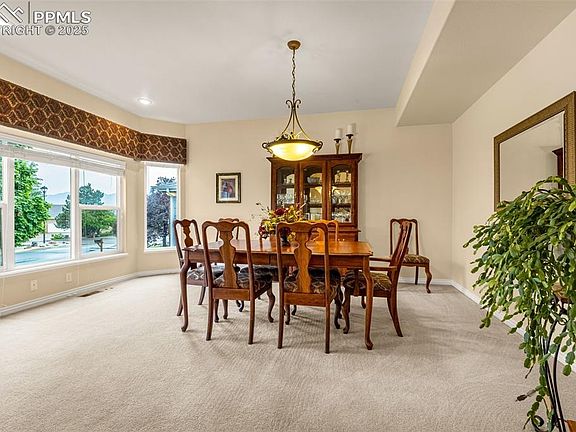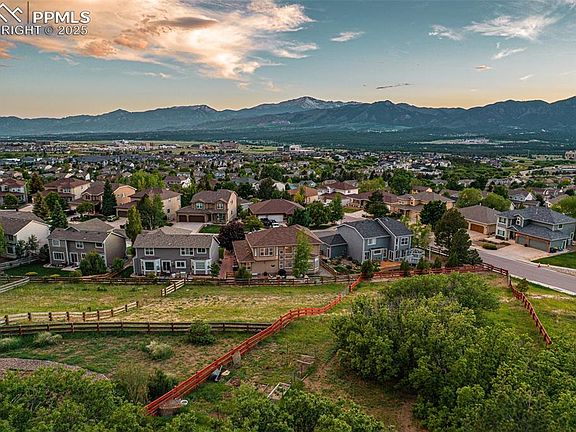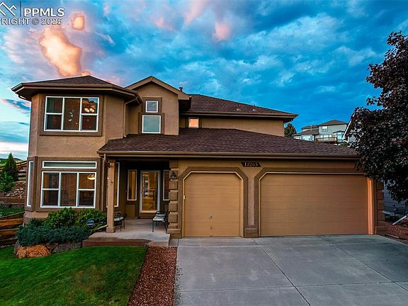 **See Virtual Tour for HD Video** Breathtaking mountain views greet you from nearly every angle of this warm, inviting home that sits in the heart of Northgate with a new roof! A dramatic two-story wall of windows fills the living room with natural light, framing the private backyard. This open floor plan seamlessly connects the living room, with cozy gas fireplace and custom built-ins, to the kitchen and dining areas. The kitchen is truly the heart of this home, featuring a spacious center island with granite countertops, updated appliances, and a generous corner pantry. The adjacent eat-in dining area opens directly to a private backyard oasis—step outside onto your patio surrounded by mature, professional landscaping, perfect for outdoor entertaining or peaceful mornings. The main level also features a convenient guest bedroom and a full bathroom, making it ideal for visitors or multigenerational living. Upstairs, you’ll find two secondary bedrooms, another full bath, and a spacious primary suite with incredible Front Range views. The attached five-piece bath provides a spa-like retreat with a soaking tub, dual vanities, and a walk-in closet. The finished basement offers even more flexibility with a large bedroom, full bathroom, and an expansive recreation space—perfect for a home theater, gym, or multi-generational living. There’s also plenty of additional storage space. Car enthusiasts will love the oversized 3-car garage, providing ample space for vehicles, workshop tools, or outdoor gear. Located in the highly desirable Northgate community, this home offers quick access to I-25, award-winning Academy District 20 schools, the U.S. Air Force Academy, premier shopping, dining, trails, and entertainment.