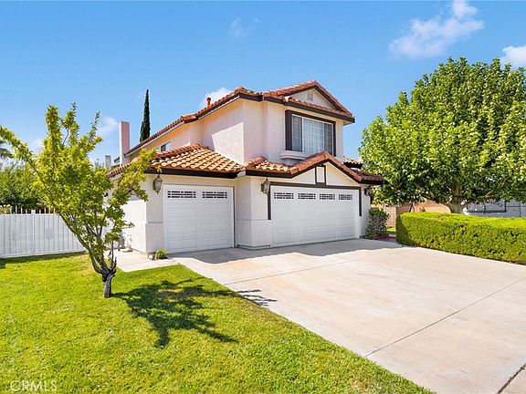The backyard is an entertainer’s dream—with a custom patio deck, dual ceiling fans, mature fruit trees (apple, apricot, and grapevine), well maintained landscaping, and gated side yard access. A 3-car garage with storage space especially upper side area, a shaded front yard highlighted by a tree and vibrant greenery.