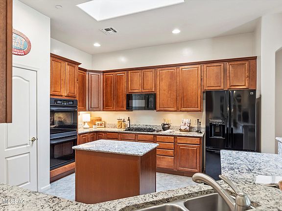 Imagine ending every day watching brilliant sunsets paint the sky over the Tortolita Mountains from your own private sanctuary on just under one acre in gated Vistoso Gateway. This exceptional 3,288 square foot home with a pool isn't just another property - it's the Arizona lifestyle you've been searching for, where complete privacy meets resort-style convenience in one of Oro Valley's most prestigious communities.This beautifully maintained 4-bedroom, 3.5-bathroom residence backs to serene open desert with no rear neighbors, offering the space and tranquility that drew you to Arizona in the first place. The thoughtful split floor plan delivers exactly what you need: an expansive great room with soaring ceilings, skylights, and gas fireplace flowing seamlessly into a gourmet kitchen featuring granite countertops, gas cooktop, double ovens, center island, and pantry. You get both a formal dining room for special occasions and a casual breakfast nook for everyday meals, plus a versatile bonus room perfect as a media room, game room, den, library, or home office.
