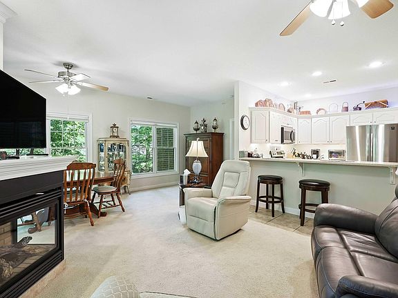 ZERO Entry 2 bedroom condo in Bettendorf, has a light filled space that backs up to mature trees for perfect privacy. Elevator brings you up from the 2 heated underground parking stalls (#15 & #16) with additional secure storage. Open floor plan includes eat in kitchen with solid surface countertops, white cabinets and Stainless Steel appliances. The living room and formal dining room are perfect for entertaining, along with the 2 sided fireplace and charming deck. Primary bedroom is large with a walk in closet, double vanities and walk in shower. The 2nd bedroom is spacious and has convenient access to the pass-through full hall bath. AHS 1 year home warranty - Shield Plus is provided. Property has been pre-inspected. Seller reserves washer/dryer. Buyer/buyer agent to confirm SQFT.