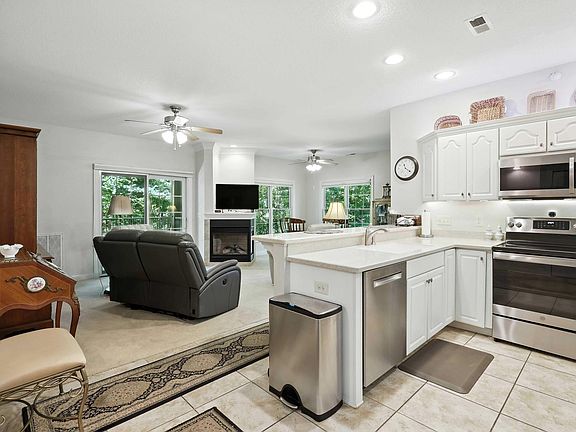 Open floor planLight filled spaceCharming deckSolid surface countertopsStainless steel appliancesWhite cabinetsEat in kitchen