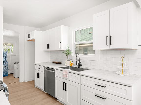 This adorable 2 bed 2 bath cottage has been completely renovated from top to bottom and is bursting with character and charm, perfectly blending modern updates with a cozy vibe. Inside you are greeted to a living space with fresh paint, LVP flooring, and new carpet. The NEW kitchen is a showstopper- featuring soft close cabinets, stainless steel appliances, and a beautiful tile backsplash. Main floor living with master bedroom with full bathroom and laundry room/mudroom! The downstairs feels like its own suite with a large bedroom, family room, and full bathroom as well! Both bathrooms have been fully updated with contemporary fixtures and designer finishes. Outside, find a freshly repainted exterior, spacious yard with a sprinkler system; and enjoy your updated deck- perfect for morning coffee, relaxing evenings, or hosting small get-togethers. Newer water heater, and HVAC! Located close to parks, shopping, and everything you need. Small in size but big on style-this one won't last long!