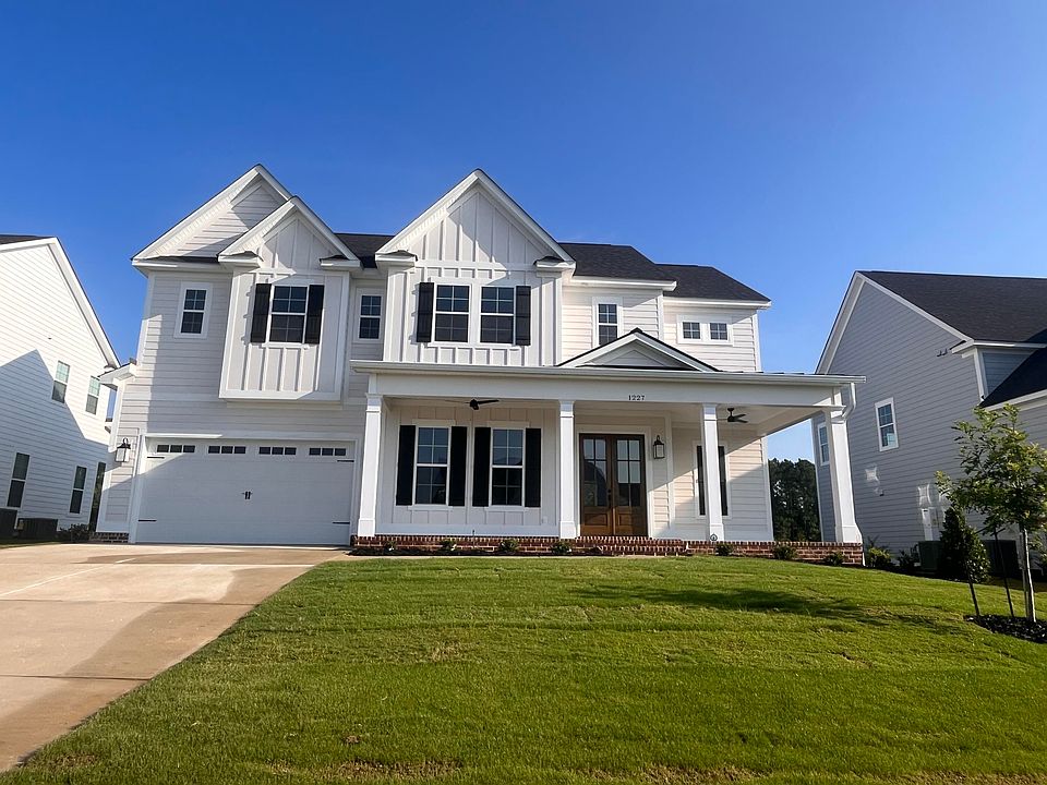 The gorgeous Evelyn plan by PDH Builders is a new one! It boasts an open-concept design with various high-end features. Walk into the double wood door entry into the very inviting foyer. To your left you will find an office. The main living area features a great room open to a gourmet kitchen equipped with a 48-inch range, a large 12x6 pantry, and a huge island with granite countertops that include cabinets under the bar area. Off the back of the kitchen is a dining room that looks out over the 50 foot buffer of greenspace. The downstairs includes a bedroom with a full bath, mud room, hardwood floors in the main living areas, and a convenient half bath for your guests. Upstairs , the very large primary bedroom includes an en suite bathroom with an 18x10 walk-in closet plus a dressing room, a fully tiled shower, a garden bathtub and double vanities. There are two additional bedrooms upstairs, each with its own bathroom and a spacious media room that shares a jack and Jill bathroom with bedroom 3. The large laundry room offers ample space. The exterior features a covered front porch and a covered back porch designed for entertainment. The home includes a two-car garage and is conveniently located near I-20, downtown Evans and various shopping options.