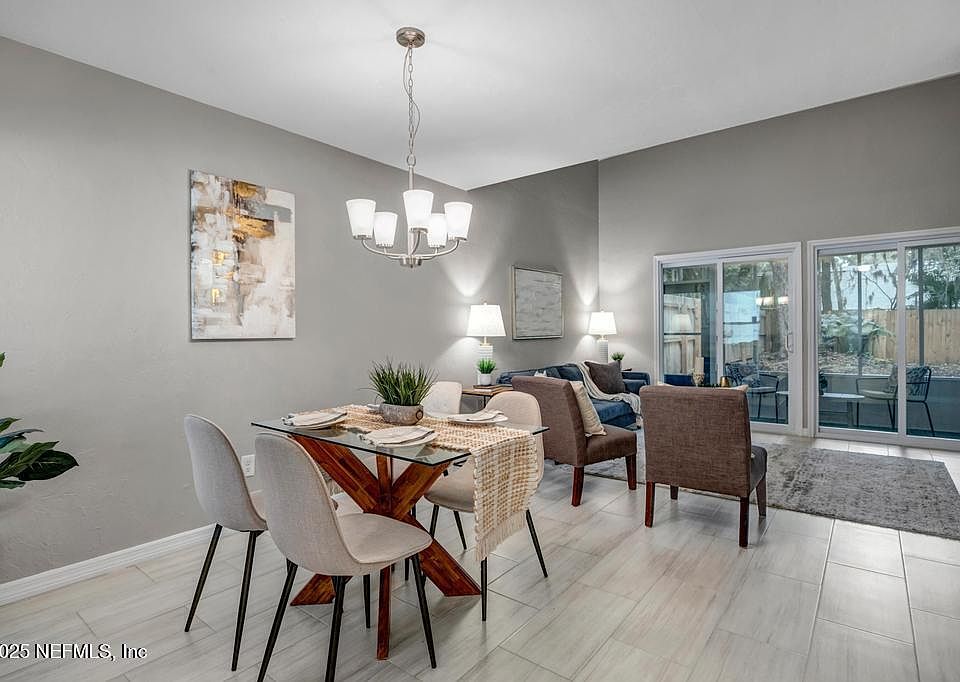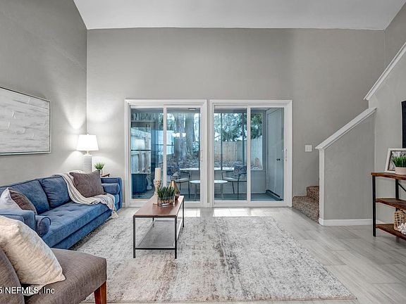 Discover this spacious 2-bedroom, 2-bath townhome tucked away in the quiet and desirable Mayport Landing community—just minutes from Hanna Park, Mayport Naval Station, and Jacksonville's beautiful beaches! This well-maintained interior unit offers a functional and airy layout with porcelain tile flooring on the first floor and carpet upstairs. The vaulted-ceiling living room opens to a private, shaded, fenced backyard through sliding glass doors—perfect for relaxing or entertaining.  Enjoy the flexibility of a first-floor bedroom and full bath, ideal for guests or a home office. Upstairs, the primary suite features a large skylight, two generous walk-in closets, and an en-suite bath for your comfort. Recent upgrades include a new roof (2022), refreshed interior, freshly painted laundry room and pantry, and a new hot water heater. Low-maintenance coastal living or a smart investment opportunity.