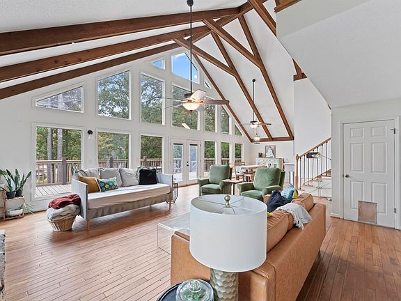 Discover lakeside living in this stunning 3-bedroom, 3-bath A-frame home, perfect for a young family! Located within the award-winning Moody School zone, this property offers both natural beauty and top-rated education. Set on a full acre of flat, open land, it provides ample space for kids to play and families to gather. Expansive windows flood the open-concept living area with natural light, offering breathtaking views of the lake from nearly every room. Enjoy mornings on the spacious deck, evenings by the fire, and direct lake access for boating, fishing, and swimming right from your backyard. Plus, you’ll have access to the community lake and playground for even more family fun. With a serene primary suite and two additional bedrooms, there’s space and comfort for everyone. This home truly combines the best of nature, community, and modern comforts—a dream family retreat awaits!