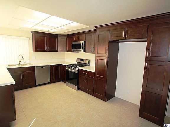 VIEW,View,View. Beautiful Single Story Remodeled Pool Home in Desirable Philips Ranch Track~ This Light and Bright 4 + 2 Home is on a Cul-da-sac street ~ Open Floor Plan ~ ~ RV Parking ~ Auto Sprinklers ~ Newly Painted Interior and Exterior ~ Private Patio in Front ~ Large Entry with tiles Flooring ~ Step Down to Living Room with Cozy Fireplace and Recessed Lighting and brand new hardwood(laminate) flooring ~ Kitchen has brand New Stainless Steel Appliances ~ Double Stainless Steel Sink with New Upgraded Faucet ~ Brand New cabinets and White quarts counter top ~ Slider to Side Yard ~ Tile Flooring, New bathroom cabinets, Vanity Mirrors in Bathrooms ~ Master Bedroom has walk-in closet and Private Bath ~ Dual Pane Slider to Back Yard ~ New hardwood Carpet and Tile Thru-Out ~ New layer of roof shingles, Upgraded pool with new equipment, new plaster and tiles with 5 year warranty. View from the back yard . Solar panels on the roof