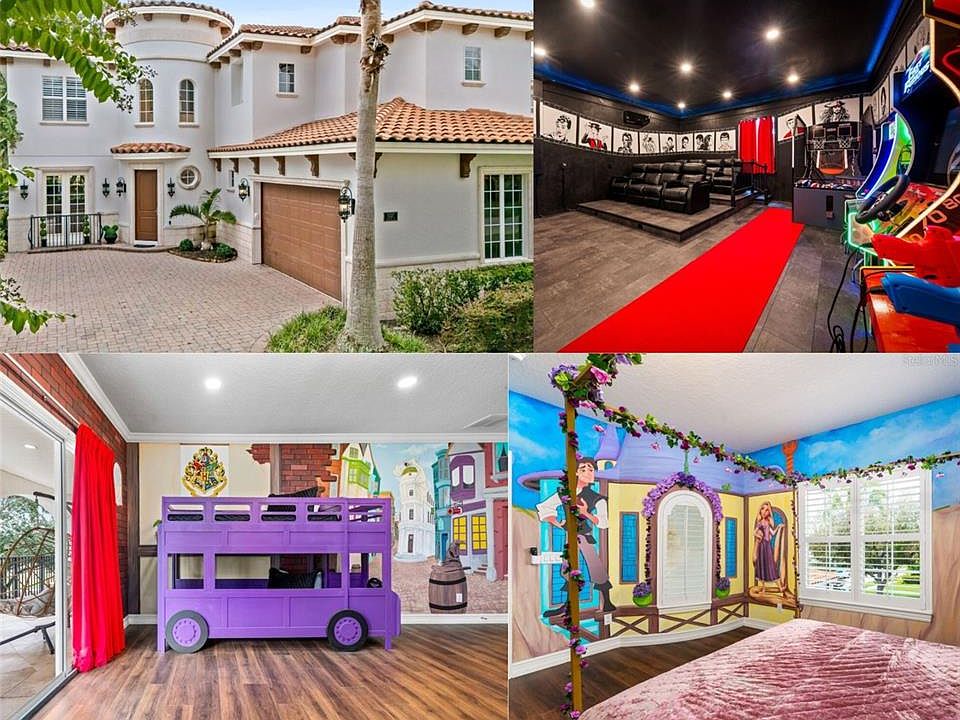 ***ACTIVE MEMBERSHIP AVAILABLE*** ONE-OF-A-KIND CUSTOM CASTLE HOME!!! Located in the beautiful Reunion Resort in the desirable Homestead community, this home is sure to impress! This FULLY FURNISHED home has been meticulously maintained by its current owners. This home has been completely RENOVATED with HIGH END UPDATES throughout including FRESH PAINT INSIDE & OUT, NEW OUTDOOR KITCHEN, NEW WATER HEATER, RE-SURFACED POOL, NEW FURNITURE, SMART DOORBELL & THERMOSTATS, NEW TV’S, NEW LANDSCAPING, RE-TILED POOL AREA, NEW TOILETS, & NEW SHOWER HEADS! This home is truly TURNKEY! That’s not all! This home has also been geared up for short term rental with the following BRAND-NEW themed rooms: TOY STORY, TANGELED, MOVIE THEATER/ ARCADE GARAGE CONVERSION, OVERSIZED DIAGON ALLEY THEMED ROOM WITH MULTIPLE BUNK BEDS, & OF COURSE, A SECRET HARRY POTTER THEMED ROOM UNDER THE STAIRS! Each room is complete with CUSTOM MURAL WORK throughout! Tall ceilings on both floors & plenty of large windows allowing the natural Florida sunlight to pour through the home! The pool backs up to the TOM WATSON GOLF COURSE and has been updated as well with a fully equipped SUMMER KITCHEN, NEW TURF AROUND THE POOL AREA WITH CORN HOLE, & PUTTING GREEN perfectly set up for family time & will help STAND OUT in the short term rental world!!! This custom CASTLE style home boasts an oversized balcony that sprawls across the entire with of the house! The location is phenomenal being just a short walk to the REUNION GRANDE and all of the restaurants within! This home is truly TURNKEY & is ready to hit the ground running from an investment standpoint. Schedule your showing before its too late & start making family memories that will last a lifetime!! REUNION’S Proximity To All The Major Theme Parks Especially Disney World Being Just 2 Exits Away, Makes This Vacation Community A Top Choice For Visitors Of All Ages. If You Are Looking To Take A Few Golf Swings While On Your Vacation You Can Take The Challenge On Any Of The 3 World Class Championship Golf Courses Designed By Arnold Palmer, Tom Watson And Jack Nicklaus That Are Located On Site. Hungry?, Why Not Step Into One Of The 5 Onsite Restaurants That Go From Hamburgers At The Cove To Fine Dining At Eleven And Everything In Between. There Are 12 Pools In The Community Including Multimillion Dollar Water Park With Lazy River & Water Slide.