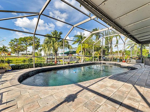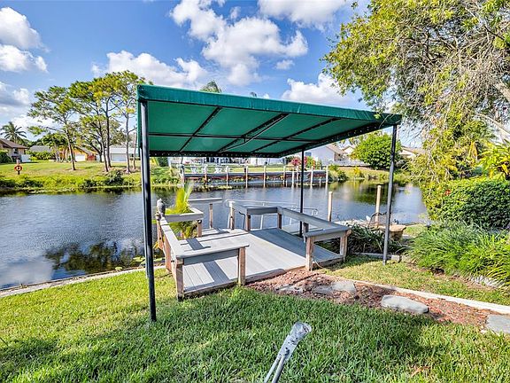 This beautiful 3 bed 2 bath family home is located in a desirable boating community of Deerfield Beach. Enjoy outdoor entertaining in the spectacular back yard featuring a screened patio/pool area, fenced yard, a covered gazebo right on the water and a private boat dock. The interior of the home is spacious with great natural light, wood and tile floors, vaulted ceilings and so much more. The kitchen offers custom built-ins, granite counters, white cabinets and a nice view of the pool and water. Each bedroom is spacious and has great closet space and natural light. This lovely home has no shortage of additional features including a whole home generator, built-in camera system, pavered driveway and custom awnings.