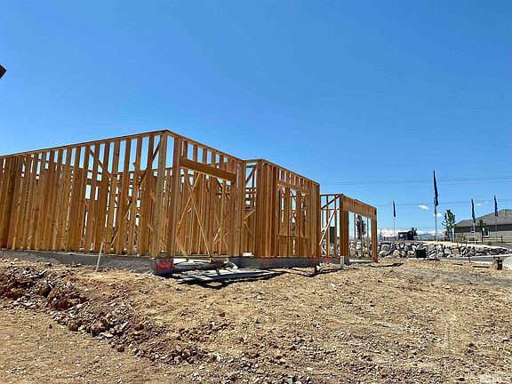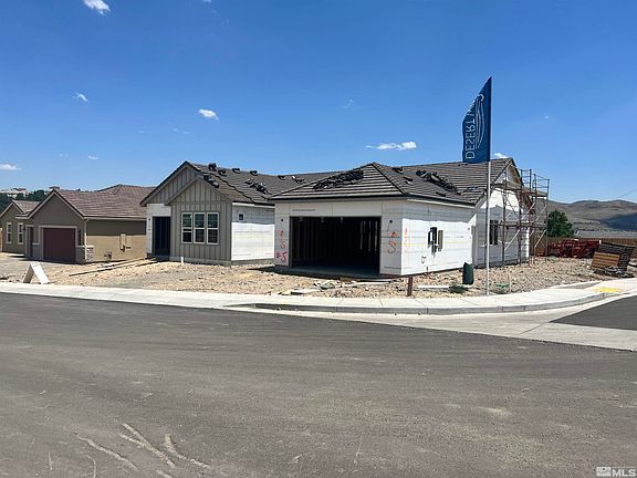 Beautiful 4 bedroom plus den, 3.5 bathroom Plan 3 home on Lot 5 in Eagle Peak! A gated community of just 40 homesites set upon a hilltop in Sparks, Eagle Peak is a fantastic place to call home! Conveniently located off Satellite Drive between Sparks and Vista. Featuring abundant natural light with an oversized sliding glass door, 10-foot ceilings and 8' interior doors, this home will be ready Fall 2023. Designer selected interior finishes will be installed throughout!, Kitchen features built in 36" KitchenAid Cooktop with under cabinet hood, along with a built-in oven and microwave, island with sink, granite counters and walk-in pantry, and is open to the living room which features a built-in electric fireplace. The generously sized 3-car garage includes a 220V prewire for an electric car charger. The HVAC is multi-zone system, so you can choose which areas of your home to heat and cool. All homes include with paver driveways, entries and covered patios, stucco exterior with Board & Batten and stone accents, and a concrete tile roof. This home includes wood look LVP in living area, den and kitchen similar to model home.